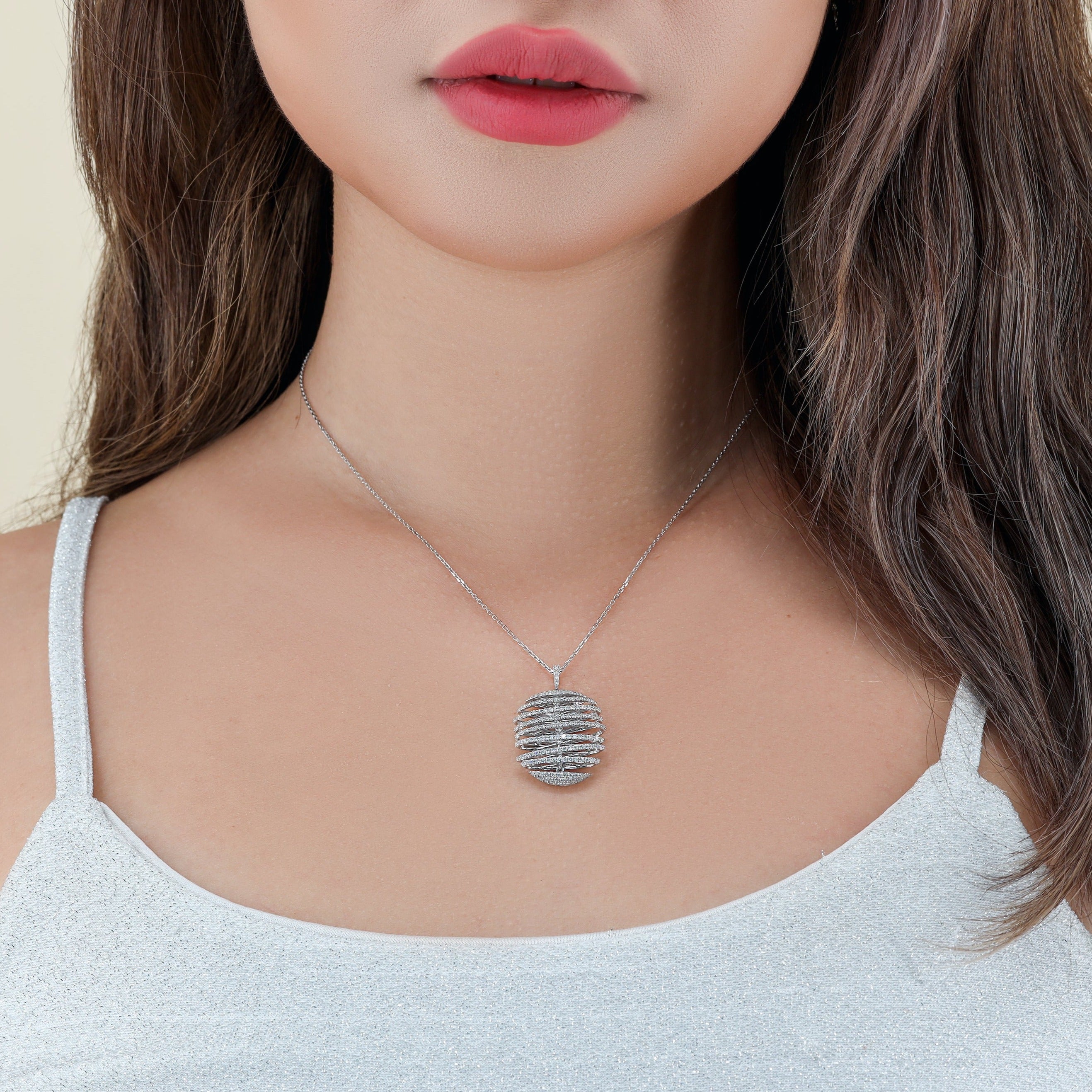 The Cosmic Polaris II Necklace is a stunning celestial-inspired piece that combines modern elegance with cosmic allure. Crafted in luxurious 18k white gold, this necklace features a beautifully designed pendant that captures the essence of starry skies and cosmic movement. The pendant is adorned with 0.89 carats of natural diamonds—G-H in color and VS-2 clarity—meticulously set to maximize brilliance and fire. Its unique, layered design resembles a celestial body or a radiant starburst, creating a captivating visual effect that glows with sophistication. The necklace is available in your choice of platinum, 18k rose gold, or 18k yellow gold, allowing you to personalize your look. The chain length complements the pendant perfectly, making this piece ideal for both everyday elegance and special occasions, adding a touch of cosmic wonder to any ensemble.