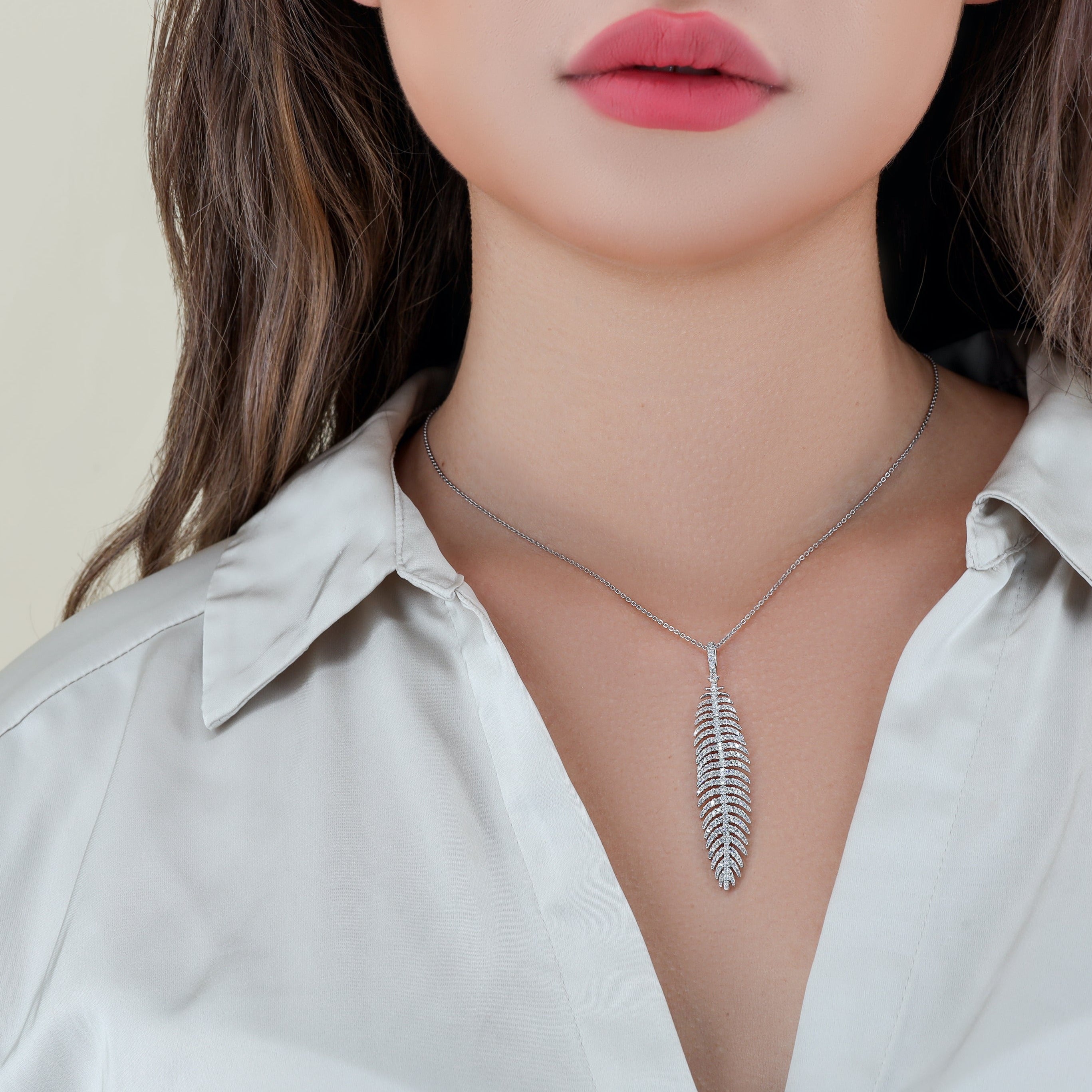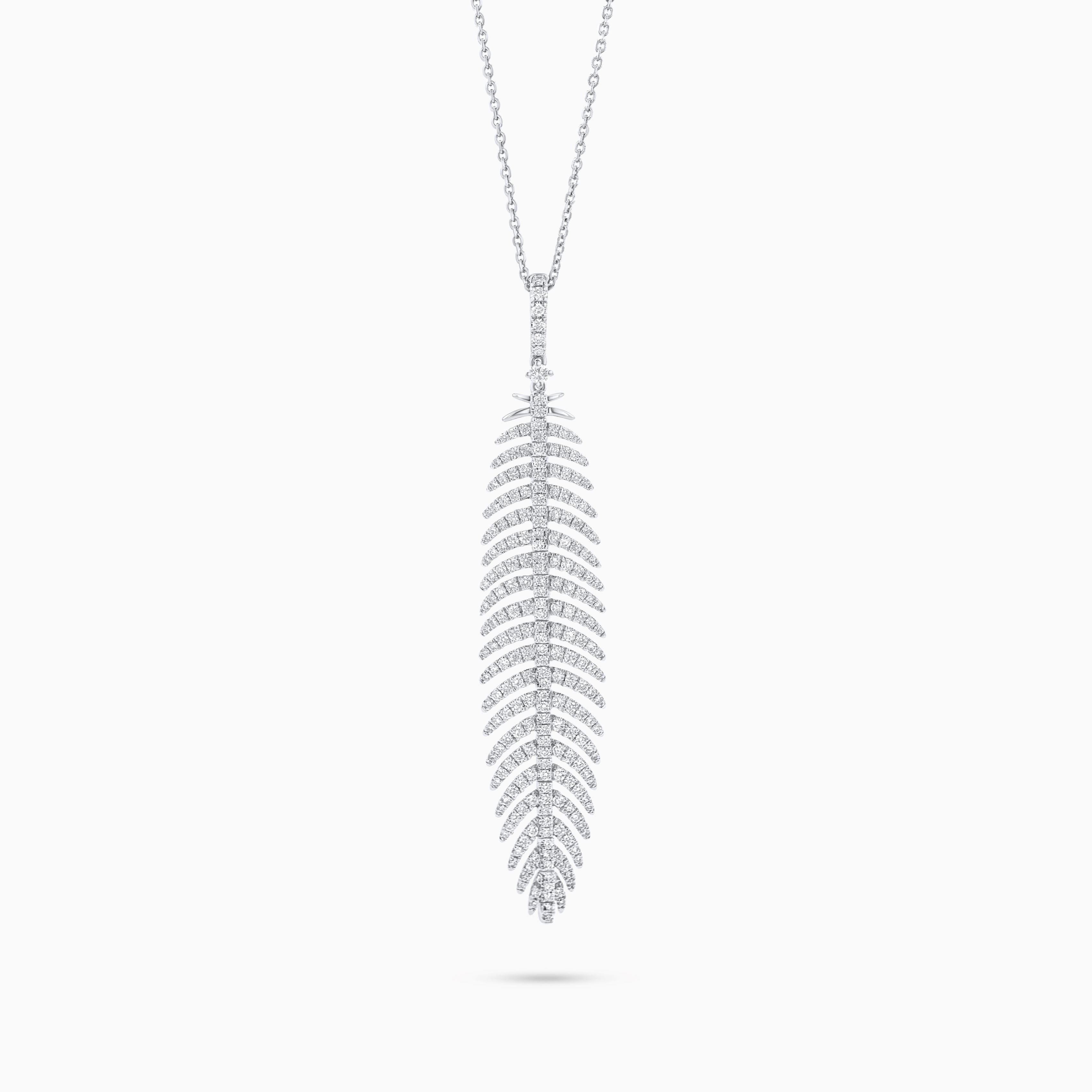 The Cosmic Trellis Necklace is an exquisite piece inspired by the intricate beauty of celestial patterns and organic forms. Crafted in high-quality 18k white gold, this necklace features a delicate, leaf-like pendant designed with a lattice of shimmering natural diamonds. Adorned with a total of 1.29 carats of diamondsG-H in color and VS-2 clarity—each stone is expertly set in a pavé style to create a seamless, radiant surface that catches the light beautifully. The trellis motif evokes a sense of natural growth and cosmic harmony, making it a versatile and luxurious addition to any jewelry collection. The necklace can also be customized in platinum, 18k rose gold, or 18k yellow gold to suit your personal style. Its elegant chain complements the pendant perfectly, making it ideal for both everyday sophistication and special occasions.